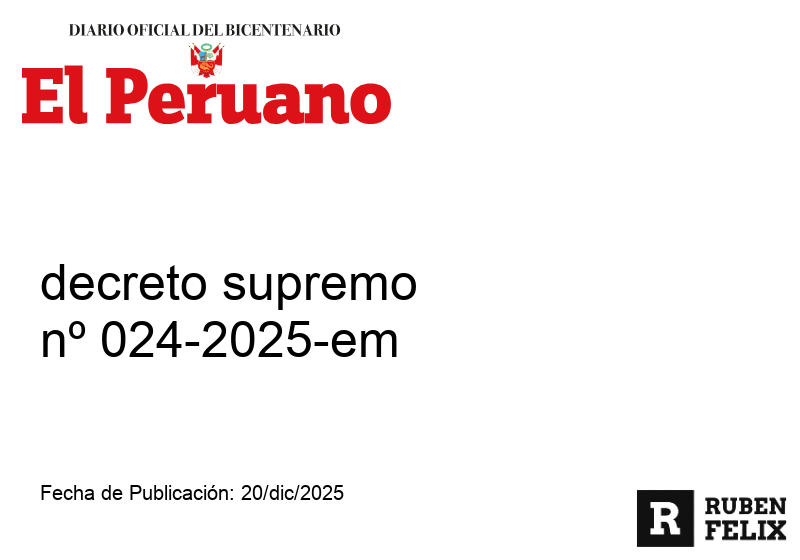 diciembre 20, 2025 Decreto Supremo 024‑2025‑EM: Declaración de necesidad pública e interés nacional para hidrocarburos en LoretoDecreto Supremo 024‑2025‑EM declara de necesidad pública e interés nacional el aprovechamiento de hidrocarburos en Loreto, priorizando los...