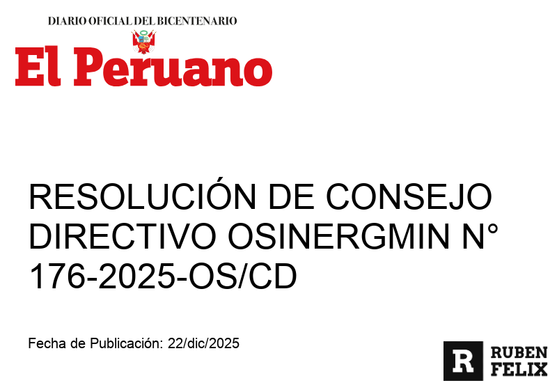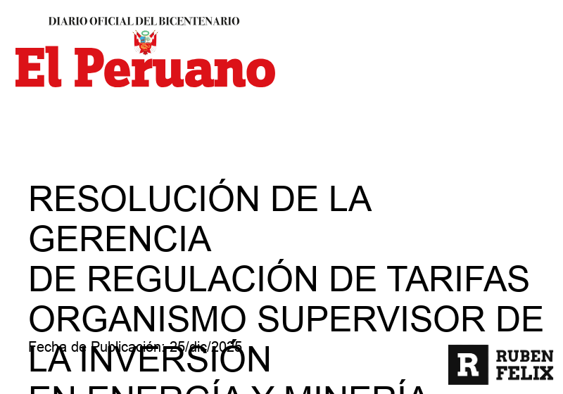 diciembre 19, 2025 Designan Gerente de Regulación de Tarifas del OSINERGMINOSINERGMIN designa al Sr. Miguel Juan Révolo Acevedo como Gerente de Regulación de Tarifas por el período 19‑dic‑2025...