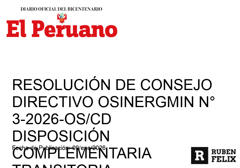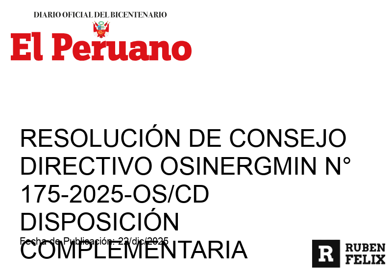 diciembre 22, 2025 Publicación del proyecto de norma para la calificación de Cargas Esenciales del SEINOSINERGMIN autoriza la publicación del proyecto normativo para calificar Cargas Esenciales del SEIN, con plazo de 30 días...